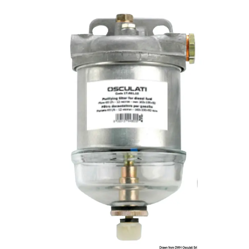 Ensure clean diesel fuel with Osculati's efficient purifying filter, featuring a 12-micron filtration level.