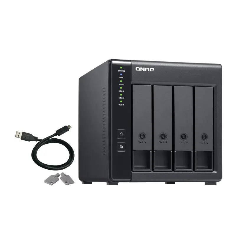 The TR-004 USB 3.2 Gen 1 RAID expansion enclosure allows you to expand the capacity of your QNAP NAS and PC. The TR-004 can also be utilized as a DAS (Direct-attached Storage) device, allowing you to directly access its content just by connecting it via USB. The TR-004 features four 3.5-inch SATA drive bays with multiple RAID configuration options and USB 3.2 Gen 1 Type-C connectivity to bring you a highly reliable and secure storage capacity expansion solution.Effective storage expansion with RAID SupportThe TR-004 is an ideal storage expansion solution for PCs, especially for laptops which lack the ability to install larger, higher-capacity drives. Featuring four 3.5-inch SATA drive bays and supporting RAID configuration, the TR-004 provides the ability to store a vast number of files and data and to ensure protection against potential drive failure.Supports various RAID levelsThe TR-004 supports a variety of RAID configurations. Depending on your requirements, you can switch between hardware- or software-controlled RAID modes. Move the DIP switches to corresponding positions for your ideal RAID mode: Individual, JBOD, RAID 0, RAID 1/10 or RAID 5. You can also configure the RAID settings from your QNAP NAS, or by using the QNAP External RAID Manager utility on your computer.Flexible storage configuration and managementCompared with other RAID enclosures, the TR-004 provides software-controlled configurations for greater management flexibility. Users can configure RAID and monitor disk health using Storage & Snapshots Manager on a QNAP NAS, or by using the QNAP External RAID Manager utility on their computer.Versatile usage scenarios to meet storage expansion needsThe TR-004 meets many storage expansion requirements for home and work use, including:Scenario 1: Expand the capacity of your NASThe TR-004 provides an alternative method for users to expand their NAS storage capacity. By connecting the TR-004 to their NAS and using the Storage & Snapshots Manager, users can easily configure and manage their storage expansion. The TR-004 supports a variety of QNAP NAS storage and file management functions, allowing users to build storage pools, find files with Qsirch and organize files with Qfiling.Use the TR-004 as an alternative to conventional NAS expansion enclosuresAs an external hardware RAID device, the TR-004 operates independently and does not require additional NAS system resources. When compared with the UX-500P expansion enclosure, the TR-004 uses less NAS system resources.Scenario 2: External storage for your NASInstead of using the TR-004 to expand the capacity of your QNAP NAS, you can use it as a complimentary storage unit for backing up or moving data. It also allows you to physically migrate huge data collections that would require significant network bandwidth. While connected to the NAS, you can monitor the health and status of the TR-004 by using the Storage & Snapshots Manager on the NAS.Scenario 3: Expand the storage space of your computerThe TR-004 can quickly add storage space to your computer. You can use the DIP switch to configure a hardware RAID mode or manage it by using the QNAP External RAID Manager utility. The health and status of the TR-004 can also be monitored by using the QNAP External RAID Manager utility.Scenario 4: Cross-platform file sharingFrom your NAS to Windows, Mac, and Linux computers, the TR-004 is compatible with a wide range of devices. This makes it ideal for quickly moving large files between different devices. The TR-004 is even compatible with devices that use the exFAT file system*, adding further convenience for accessing and sharing files from a wider range of devices.* To access devices that use the exFAT file system, users must purchase a separate exFAT driver license.