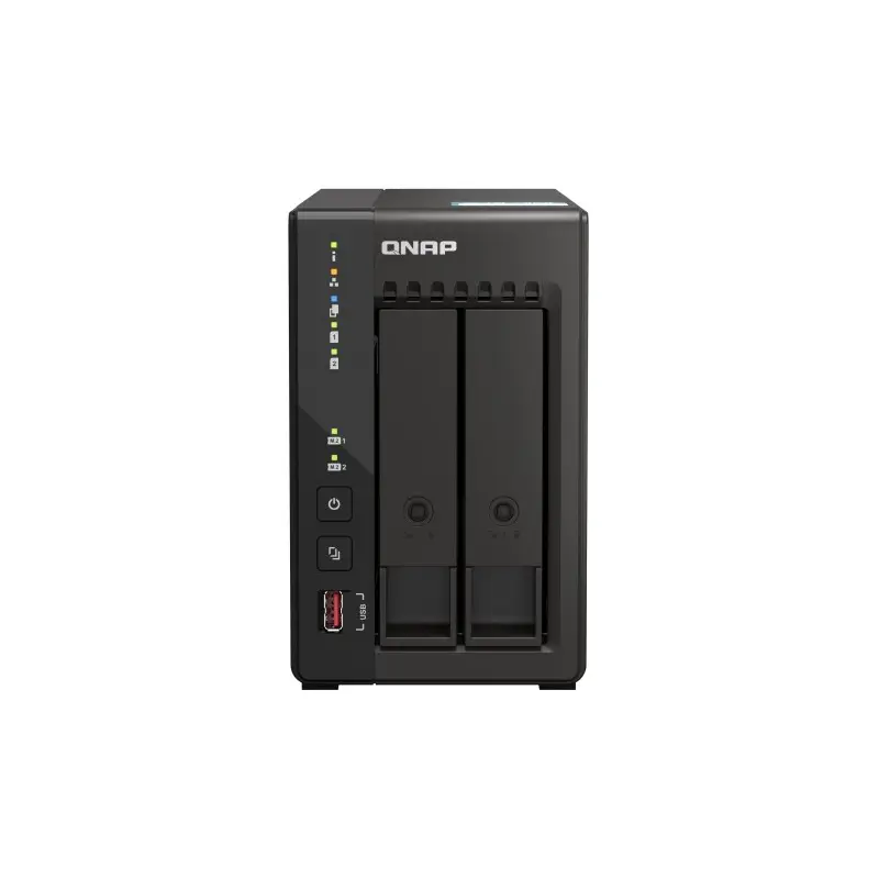 TS-253EDual 2.5GbE, 8GB RAM, and long-term availabilityThe TS-253E features 2.5GbE connectivity, 8GB RAM, and M.2 slots for NVMe SSD caching to deliver high performance for applications such as surveillance systems, virtual machines, file servers or backup servers. Dual HDMI outputs also provide direct multimedia playback and robust surveillance monitoring. QNAP will provide long-term availability and support for the TS-253E, providing a great choice for businesses requiring matching NAS models deployed in multiple locations.Intel quad-core processor burst up to 2.6 GHz with AES-NI encryptionProcessorIntel® Celeron® J6412 quad-core processor (burst up to 2.6GHz)RAMOnboard 8GB (non-expandable)EncryptionThe Intel® AES-NI encryption engine boosts encryption performance while maintaining the confidentiality of NAS data.USB ports• 2 x USB 3.2 Gen2• 2 x USB 2.0Long-term availabilityThe TS-253E is powered by an Intel® Celeron® J6412 processor and will be available and supported for an extended period. This long-term availability makes the TS-253E an ideal choice for MSP, SI, and other IT-related businesses requiring matching NAS models for long-term projects.24/7 surveillance solution for stores and branch officesThe TS-253E is a one-stop surveillance solution for centrally recording/managing multiple cameras and surveillance servers based in your offices, stores, and other working spaces.Record/monitor your environmentQVR Elite is QNAP’s subscription-based smart surveillance solution, allowing you to easily build a surveillance system with lower TCO and higher scalability. Recordings are saved as MP4 files, allowing playback on nearly every device. QVR Elite also integrates QNAP AI-based solutions to build smart facial recognition for retail and door access systems with QNAP NAS. You can arrange a dedicated, independent storage space for surveillance data on the TS-253E and enjoy simplified camera management, storage space allocation, camera live viewing and playback.Centrally manage up to 32 surveillance serversIf your business requires simultaneously managing multiple recording servers, then install QVR Center on the TS-253E. With QVR Center you can manage up to 32 surveillance servers and 10,000+ cameras with an easy-to-use interface.Faster image identification with integrated Intel® OpenVINO™ AI engine.With integrated Intel® OpenVINO™ AI computing resources, the TS-253E accelerates AI image recognition performance without impacting other applications or services. QNAP AI Core primarily works with the QuMagie application.Transform your network with a wallet-friendly 2.5GbE switchUpgrading your network shouldn’t break the bank, and 2.5GbE connectivity provides immediately noticeable improvements compared to standard 1GbE. QNAP offers 2.5GbE switches that supports Multi-Gigabit NBASE-T™ and allows you to use existing CAT5e cables to connect multiple computers and NAS, assisting organizations in implementing high-speed, secure and scalable network environments without going over budget.Dual 4K HDMI outputs for surveillance monitoring or multimedia displayThe TS-253E supports hardware decoding and real-time transcoding*. The dual HDMI outputs support up to 4K (3840 x 2160p) @30Hz, providing great benefits for applications like surveillance, video production/editing, industrial design and professional photography that demand on-image resolution and color realism as well as intensive media storage, transfer and display.Comprehensive backup and disaster recovery solutionThe TS-253E supports various apps that cover all your backup needs. Practice safe IT habits by regularly backing up files and device content, allowing them to be easily restored when needed.PC/Laptop backupFor Windows®, install NetBak Replicator to back up your PC to QNAP NAS. In macOS®, just set up the built-in Time Machine® to secure your data.Remote backup for NASHybrid Backup Sync makes it easy to back up data from a TS-253E to another QNAP NAS or remote server to fulfill your 3-2-1 backup strategy.VM backupEnjoy license-free VMware® and Hyper-V VM backup with source-side incremental backup, global deduplication, and recovery compression.SaaS backupSafeguard enterprise cloud data by backing up/syncing files, emails, calendars, and contacts from Google™ Workspace and Microsoft® Office 365® to the NAS.Cloud backup for NASHybrid Backup Sync supports mainstream cloud storage for NAS data backup. For backup to object cloud storage, VJBOD Cloud is especially useful to reduce bandwidth usage and backup time.QuDedup technologyHybrid Backup Sync eliminates redundant data at the source and then backs up the deduplicated data, helping to save time and storage costs while providing efficient multi-version backups.WordPress backupEnjoy efficient WordPress backup/restore and site migration by leveraging the user-friendly Multi-Application Recovery Service (MARS), and easily batch backup WordPress files and database to the TS-253E with backup scheduling.Multi-version snapshots mitigate ransomware threatsThe TS-253E supports block-based snapshots that record the state of the system at any time. It helps protect data, which can be restored back to a specific point of time, greatly helping in mitigating the threat of ransomware.Volume and LUN snapshotsTake snapshots in seconds and revert the entire volume/LUN back to a specific point in time to prevent loss of important data.Instantly restore snapshotsSnapshot content can be quickly restored to a local NAS, or restored on a folder/file basis to a local/remote NAS or cloud storage. You can also conveniently view and restore snapshots from the client side.Back up snapshotsMultiply data protection by backing up snapshot files! Replicate volume/LUN snapshots in the TS-253E to a remote NAS (Snapshot Replica) by copying only the changes made. This helps save time & bandwidth, and can be run manually or on a scheduled basis.All-in-one solution for hosting virtual machines a