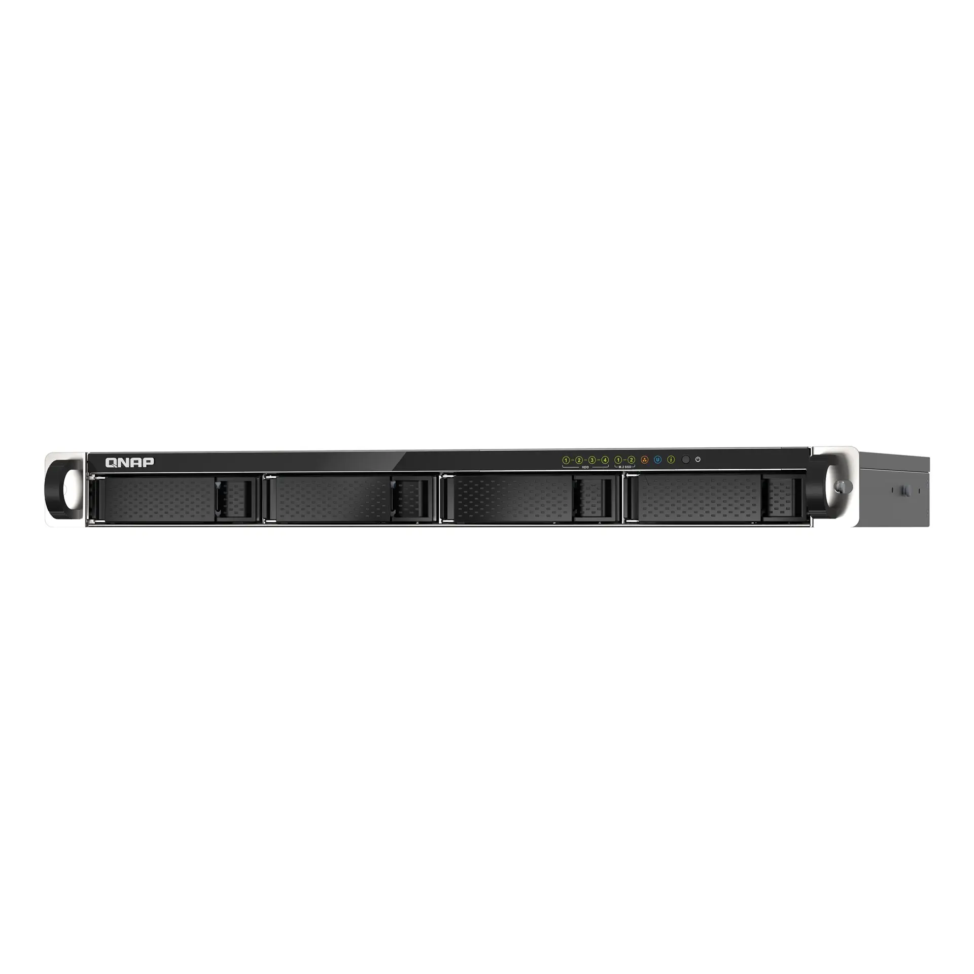 TS-435XeUShort depth rackmount 4-bay NAS, supporting 2.5GbE/10GbE connectivity and M.2 NVMe SSD cachingThe compact and feature-rich TS-435XeU provides a professional-grade quad-core NAS solution in short depth rackmount form factor. The native 10GbE SFP+ and 2.5GbE connectivity alongside M.2 NVMe SSD slots that enable cache acceleration allows businesses to efficiently tackle everyday tasks like file backup/restore and to boost team collaboration with higher productivity. The space-efficient short depth design makes the TS-435XeU easy to install in small media cabinets or places with a lot of cabling. Supporting abundant business applications (including file sharing and sync, snapshot protection, containerization, cloud storage gateways, and video streaming), expandable storage capacity, and install-on-demand apps, the TS-435XeU is an ideal cost-effective entry-level rackmount NAS.Smaller footprint for bigger opportunitiesCompared to a traditional 4-bay rackmount NAS, the compact TS-435XeU has a depth of only 11.49 inches (292 mm). This makes the TS-435XeU an excellent choice for smaller racks, and the unused space can be reserved for cabling or ventilation. The TS-435XeU is space-saving for flexible deployment and is especially suitable for multiple locations and applications including offices, audiovisual rooms, and security surveillance recording.Robust quad-core 2.2 GHz processorThe TS-435XeU is powered by an OCTEON TX2™ infrastructure Marvell® CN9130 series CN9131 ARM®v8 Cortex-A72 quad-core 2.2 GHz processor that features integrated workload-optimized hardware accelerators to meet performance, power and total cost of ownership requirements. The TS-435XeU comes with 4 GB DDR4 memory that can be upgraded to 32 GB for enhanced multi-tasking capabilities, and SATA 6 Gb/s support ensures maximum performance from storage drives.Streamlined workflows with high-speed 10GbE and 2.5GbEThe TS-435XeU has two 10GbE SFP+ ports and two 2.5GbE RJ45 ports for high-speed networking to satisfy bandwidth-demanding applications (including massive file transfer, high-speed backup/restoration, containers, and multimedia transmission) with the support of port trunking and load balancing. QNAP’s managed and unmanaged 2.5GbE/10GbE switches are a perfect match for organizations to build budget-friendly high-speed networks for productive team collaboration.Future-proof your IT infrastructure for high-speed networksQNAP provides comprehensive, budget-friendly storage and networking solutions, allowing you to easily and flexibly upgrade network environments for bandwidth-hungry applications.2.5GbE/10GbE NASA fast NAS with one or more 2.5GbE/10GbE LAN ports.Upgrade computers and serversComputers and servers with available PCIe slots can install QNAP network expansion cards that support 10G/5G/2.5G/1G/100M Multi-Gig.Add Ethernet ports to laptopsLaptops and computers can use a QNAP USB 3.2 Gen 1 to 5GbE adapter that supports N-BASET/Multi-Gig.A switch that supports 2.5GbE+QNAP switches allow connecting multiple workstations and devices for high-speed collaboration.Get performance benefits from SSD caching and Qtier TechnologyTo attain optimal I/O and reduce latency, you can configure SSD caching by using either 2.5-inch SSDs or the two built-in M.2 2280 SSD slots (supports high-performance NVMe PCIe Gen 3 SSDs, sold separately) in the TS-435XeU. Coupled with QNAP’s SSD-aware features, the TS-435XeU maximizes performance with high cost-effectiveness.SSD over-provisioning(Over-provisioning)Add additional SSD over-provisioning to avoid write amplification and improve SSD random write speeds and endurance. You can potentially attain enterprise-grade SSD performance levels from affordable consumer-grade SSDs!SSD cache accelerationEnables SSD caching for increasing IOPS performance and reducing latency for storage volumes, ideal for IOPS-demanding applications.Qtier for auto-tieringQtier Technology drives auto-tiered storage with continuous data optimization across high-performance SSDs and high-capacity HDDs based on access frequency. I/O-Aware Qtier can reserve a cache-like space in the SSD tiered to handle burst I/O in real time.Host container applicationsContainer Station integrates Docker®, LXD, and Kata Containers lightweight virtualization technologies. You can download apps from the built-in Docker Hub® to easily import/export container apps and manage access controls, enjoying the benefit of easy installation, transferability and high-efficiency.A multimedia server for video streamingThe short depth TS-435XeU can be easily placed in a media cabinet. By installing streaming apps such as Plex® Media Server from the QTS App Center, you can stream media files stored on the TS-435XeU to mobiles and media streaming devices (including DLNA®, Roku®, Amazon Fire TV® and Google Chromecast™).Comprehensive backup and disaster recovery solutionThe TS-435XeU supports various apps that cover all your backup needs. Practice safe IT habits by regularly backing up files and device content, allowing them to be easily restored when needed.PC/Laptop backupFor Windows®, install NetBak Replicator to back up your PC to QNAP NAS. In macOS®, just set up the built-in Time Machine® to secure your data.Remote backup for NASHybrid Backup Sync makes it easy to back up data from a TS-435XeU to another QNAP NAS or remote server to fulfill your 3-2-1 backup strategy.Cloud backup for NASHybrid Backup Sync supports mainstream cloud storage for NAS data backup. For backup to object cloud storage, VJBOD Cloud is especially useful to reduce bandwidth usage and backup time.Multi-version snapshots mitigate ransomware threatsThe TS-435XeU supports block-based snapshots that record the state of the system at any time. It helps protect data, which can be restored back to a specific point of time, greatly helping in mitigating the threat of ransomware.Volume and LUN snapshotsTake snapshots in seconds and revert the entire volume/LUN bac