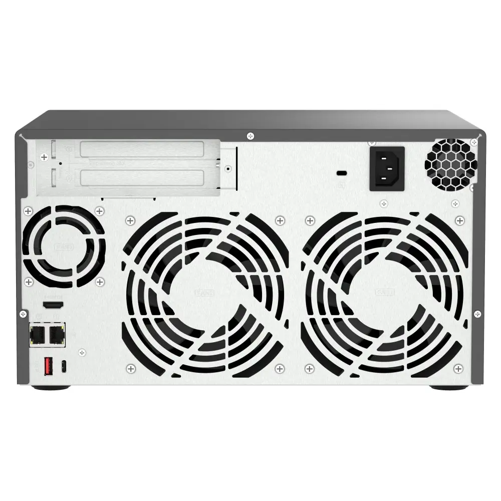 Highly-reliable ZFS-based storage with PCIe Gen 4 expandability for 10/25GbE connectivity, M.2 NVMe SSD caching and multi-threads processors for virtualization applicationsWith an Intel® Core™ multicore-core Processor to support the ZFS-based QuTS hero operating system, the TVS-h874 SMB NAS ensures data integrity and supports block-level inline data deduplication and compression, near-limitless snapshots, real-time SnapSync, and SSD optimization. Whether for mission-critical file servers, virtualization servers, collaborative video editing, or efficient data backup and recovery applications, the TVS-h874 delivers an ideal NAS solution. The high-performance TVS-h874 provides PCIe Gen 4 (up to twice the transmission speed of Gen 3) expandability, M.2 NVMe SSD caching, and 2.5GbE/10GbE connectivity for high-speed virtualization network environments.High-performance Intel® Core™ processorThe TVS-h874 adopts an Intel® Core™ multi-core Processor with Intel® UHD Graphics 770 to increase multi-tasking capabilities, offering SMBs a secure, reliable, and high-performance NAS solution.12th Gen Intel® Core™ Hybrid Technology for Optimized Performance12th Gen Intel® Core™ CPUs leverage the breakthrough Performance Hybrid Architecture, combining Performance-cores with Efficient-cores to greatly enhance the multi-tasking efficiency of x86 architecture. Multiple threads also provide a smoother experience for virtualization applications.Boost NAS performance with M.2 SSDs or TPUThe TVS-h874 has two M.2 PCIe slots, enabling SSD caching or SSD storage pools for improved performance, or other applications.Install M.2 NVMe SSDs for cache accelerationThe TVS-h874 supports SSD caching and features two M.2 slots that support M.2 PCIe NVMe SSDswith 2280 form factors (sold separately) for boosting overall NAS performance.Accelerate AI–powered image recognition with TPUBy leveraging a Google Edge TPU to QNAP AI Core (AI-powered engine for image recognition), the TVS-h874 can perform high-speed face and object recognition. Google Edge TPU enables QuMagie to quickly process thousands of photos with high-speed AI Image recognition and classification, and QVR Face to analyze real-time video for instant facial recognition.Build a High-Speed 10GbE/2.5GbE Network EnvironmentTVS-h874 has two 2.5GbE ports (TVS-h874-i9-64G is preinstalled with a dual-port 10GBASE-T network card). QNAP offers comprehensive, budget-friendly storage and networking solutions that provide an array of connectivity possibilities. Easily and flexibly upgrade your workplace or home network now to handle bandwidth-hungry applications.A fast 2.5GbE/10GbE NASA QNAP NAS featuring one or more 2.5GbE/10GbE ports, and Port Trunking allows you to combine multiple ports for greater bandwidth potential.Upgrade computers and serversServers and desktops can install PCIe-based QNAP network cards that support 10G/5G/2.5G/1G/100M Multi-Gig.Add a 5GbE port to laptopsLaptops and upgrade-limited computers can use QNAP’s portable USB 3.2 Gen 1 to 5GbE adapter that allows you to connect to 5G/2.5G/1G/100M networks via USB.A switch that supports 2.5GbE/10GbEQNAP’s 10GbE/NBASE-T switches support 10G/5G/2.5G/1G/100M and allow connecting multiple workstations and devices for high-speed collaboration in device-dense environments.Abundant I/O capabilities with PCIe expansionThe TVS-h874 has two PCIe slots that allow for installing various expansion cards for expanding application potential.Ultimate visual experience with Full HD HDMI output and real-time video transcodingHDMI outputThe TVS-h874 features HDMI output that supports Full HD, providing great benefits for applications like video production/editing or industrial design that demands high resolution and intensive media storage, transfer, and display.View NAS media or virtual machines on an TVBy connecting the TVS-h874 to an HDMI display, you can directly watch multimedia content saved on the NAS, operate virtual machines from Virtualization Station, or enjoy multimedia using HD Player or third-party players.Real-time transcoding and displayThe TVS-h874 features Intel® UHD Graphics that supports hardware decoding and real-time transcoding* for converting videos to universal file formats that can be smoothly played on multiple devices.Faster image identification with integrated Intel® OpenVINO™ AI engine.With integrated Intel® OpenVINO™ AI computing resources, the TVS-h874 accelerates AI image recognition performance without impacting other applications or services. QNAP AI Core primarily works with the QuMagie application.ZFS-based QuTS hero operating system enhances NAS performance and data integrityQuTS hero combines the app-based QTS with the 128-bit ZFS file system to provide flexible storage management, comprehensive data protection, and optimized performance to tackle the complexity and performance demands of modern IT. From storage management, virtualization, to collaborative media workflows, QuTS hero streamlines your business-critical tasks.Data integrity is keyQuTS hero’s self-healing ensures data integrity and reliability. Write Once, Read Many (WORM) is also supported.Data reduction improves storage efficiency and performanceInline data deduplication, compression, and compaction reduce file sizes to conserve storage capacity and optimize performance.Multi-level cache technologyMain memory read cache (L1 ARC), SSD second-level read cache (L2 ARC), and ZFS Intent Log (ZIL) for synchronous transactions with power failure protection are supported to boost performance and security.RAID Z enables robust data protectionMultiple RAID levels allow flexible capacity utilization. RAID Triple Parity and Triple Mirror deliver higher levels of data protection.QSAL (QNAP SSD Antiwear Leveling) enhances data protectionRAID-level SSD lifespan is automatically and regularly detected to prevent simultaneous SSD failure, improving your data protection and system reliability.App Center ecosystem 
