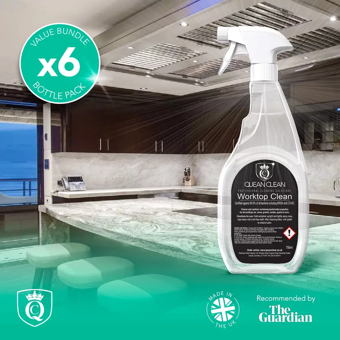 Our cleaner is the ultimate solution for maintaining hygienic and pristine surfaces throughout your yacht. Say goodbye to harmful chemicals and hello to a safe, effective, and a long-lasting clean with Quean Clean Worktop Clean.