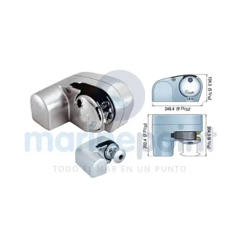 Horizontal electric winch, with pulley for chain and rope. Built from corrosion-resistant anodized aluminium. Supplied with manual drive lever and operating relays. Electricity: 12 V (40 A) 500 W
