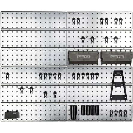Versatile clamp set made from durable galvanized steel and polyacetal for reliable fixing.