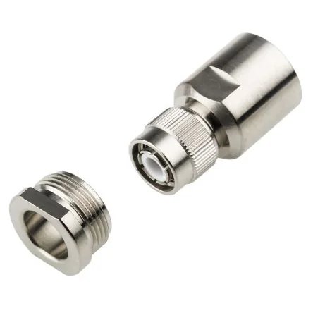 High-quality TNC connector plug for 50 Ohm RF applications with clamp termination.