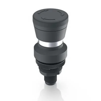 RAFI's latching emergency stop push button is designed for PCB mounting with a 22.3mm cutout and IP65/IP67 protection.
