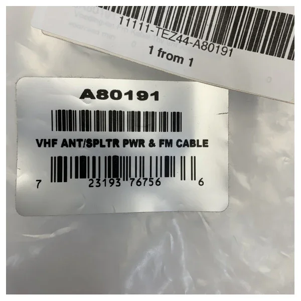The Raymarine A80191 cable is specifically designed as the power and FM cable for the Raymarine AIS100 VHF antenna splitter. The part number is A80191. This cable provides the power for the AIS100 splitter and also allows for the passage of an FM signal, so you can use your VHF antenna for your marine radio as well. This product is intended solely as a connection cable and does not contain any active electronics for splitting or signal processing.