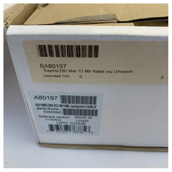 The Raymarine A80197 kit includes the RayMic 260 handset, a passive speaker, and a 7-metre extension cable to connect the second station to the Ray260 VHF radio base. The kit is specifically the EU version (European), ensuring compatibility with the Ray260 EU models. The RayMic handset features a clear LCD display and is IPX7 waterproof, guaranteeing durability in the marine environment.