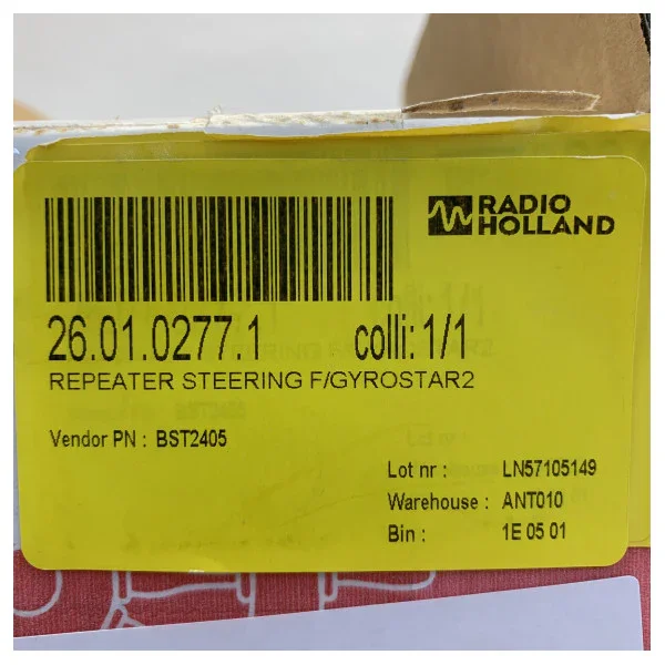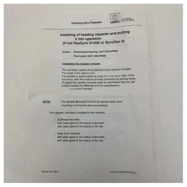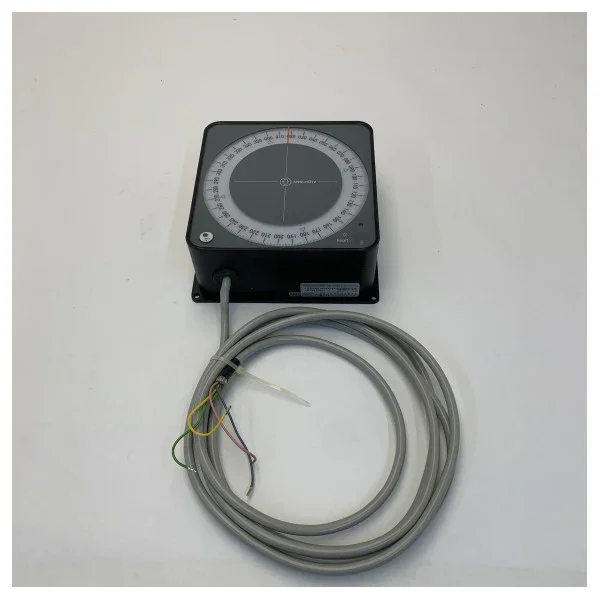 The model number of this product is 133-558-NG001. It is a steering repeater panel and is exclusively compatible with the Raytheon Anschutz Gyrostar 2 gyrocompass system. The functionality includes displaying the steering angle, essential for steering and navigation. This device is designed for use in the marine sector and meets the applicable nautical standards.