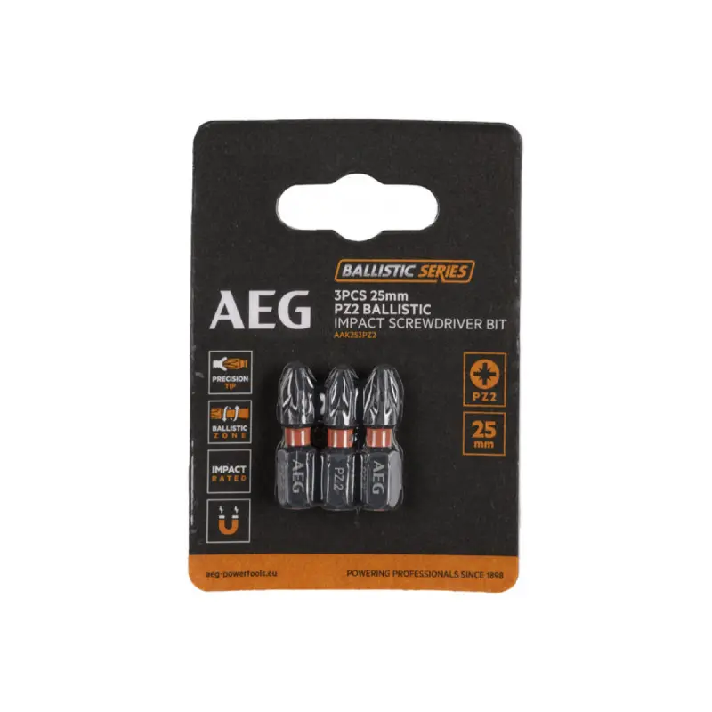 3 x Reinforced ballistic screwdriver bits AEG - 25 mm - PZ2 Delivered in their original packaging