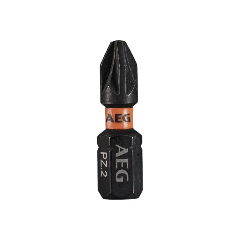 Reinforced ballistic screwdriver bits AEG - 25 mm - 3 pcs - PZ2 designed to work with impact during the installation and removal of fasteners. Due to the high torque twisting zone, the force transmission is reduced, resulting in a long service life.