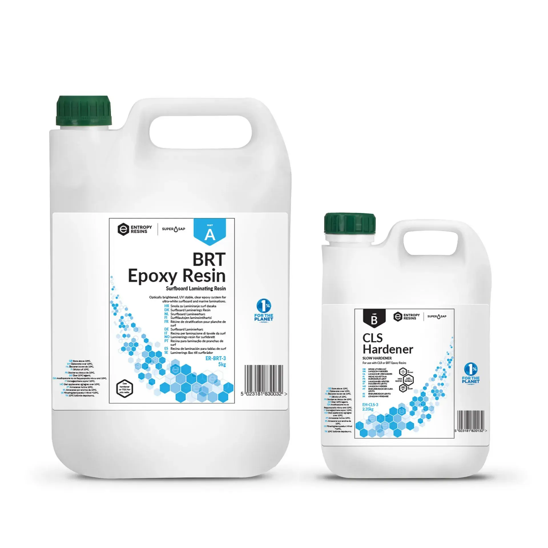 BRT is a clear, optical gloss, UV-resistant, general purpose biobased laminating resin for white surfboards and hot coating.