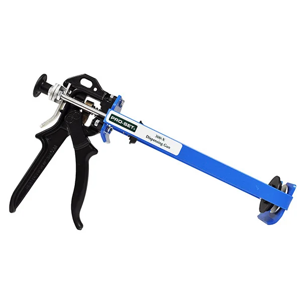 The two-component applicator gun is used with PRO-SET ADV adhesive cartridge sets to apply adhesive quickly, cleanly and accurately. The die-cast aluminum handle and trigger are shaped for comfortable use. A 26:1 trigger ratio dispenses high-viscosity adhesive with ease, and the gun's robust construction ensures precise adhesive application and long service life.