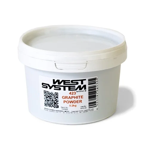 Graphite powder 423 is a fine black powder that can be mixed with epoxy to produce a low-friction, more scratch-resistant and durable exterior coating. Epoxy/graphite is commonly used as a low-load, low-speed bearing surface, as a coating on rudders and daggerboards, or on the bottom of racing boats that run dry. It does not have anti-fouling properties. The epoxy/graphite mixture turns black as it cures.