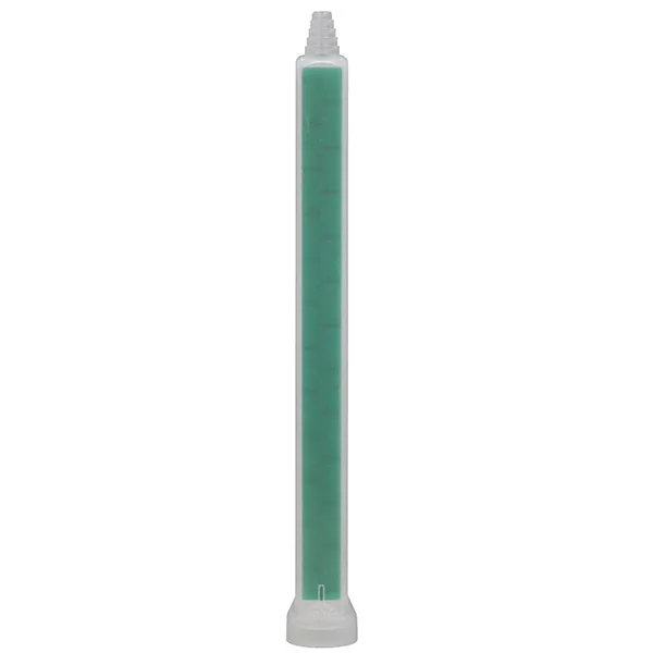 Resin and hardener mix homogeneously in the mixing tube and emerge from the unit as a uniform epoxy indicating that the two materials are well blended, in the correct ratio.