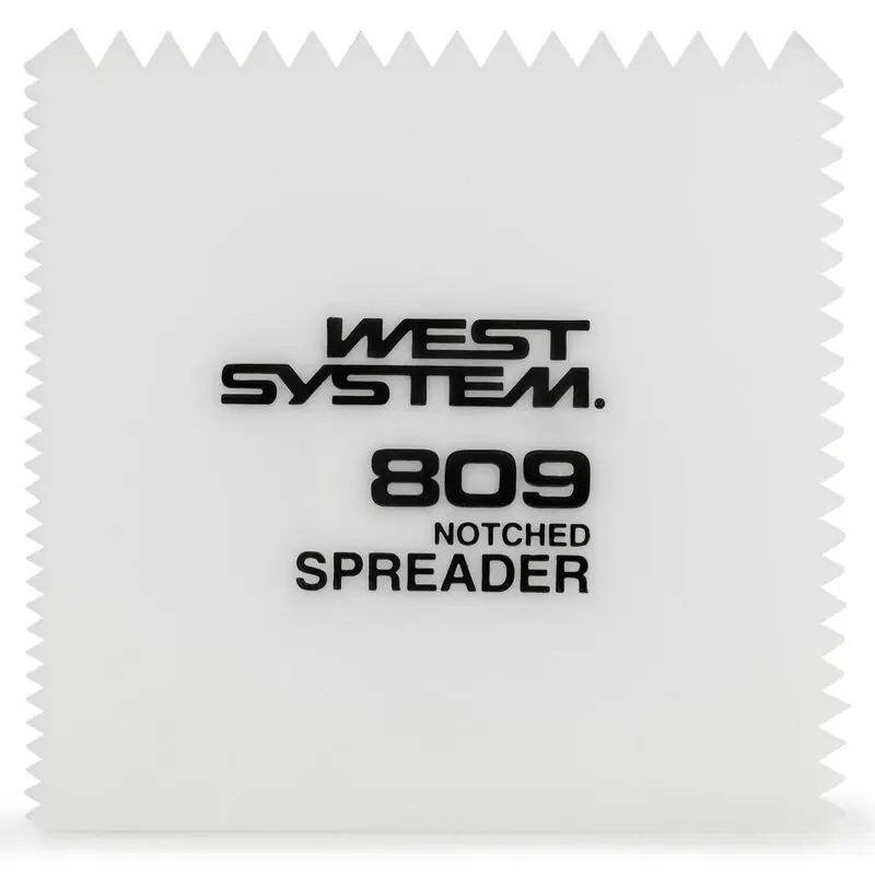 Lightweight, reusable spreaders measuring 110x110 mm with 3 mm, 4 mm, and 6 mm notches on three sides for quickly applying modified epoxy at a constant rate.