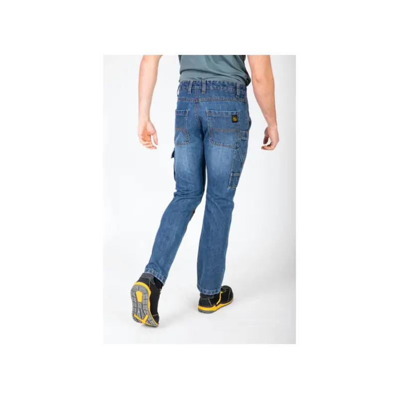 The multi-pocket work jeans in carpenter style for men from RICA LEWIS will suit both DIY enthusiasts and professionals. Indeed, the latter can use it as this trouser complies with the European standard CE EN:13402-3:2017. A special fabric called "Cordura" has been used to reinforce the knees of the garment. This synthetic polyamide (Nylon) fibre weave, combined with other fibres, will create a fabric that is highly resistant to abrasions, tears, and punctures while maintaining a certain lightness and breathability. Additionally, this material is more durable than traditionally used textiles: 2 to 4 times more resistant than polyester and up to 20 times more resistant than cotton. Furthermore, you can store various items such as a phone or tools in the numerous pockets (with gussets or closed side pockets) that this garment has. Finally, to prevent potential tears, RICA LEWIS has sewn with triple needles to ensure optimal strength of the safety seams.