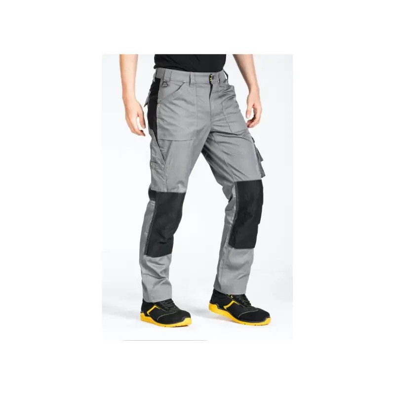 The grey multi-pocket work trousers for men from RICA LEWIS will suit both DIY enthusiasts and professionals. Indeed, the latter can use it as these trousers comply with the European standard CE EN:13402-3:2017.The presence of stretch inserts on the sides, knees, and also on the back fork will allow you to move freely and comfortably in this robust piece. Additionally, a special fabric has been used on these trousers to allow the wearer to breathe, but above all, to stay cool and dry. The support of your future trousers will be ensured by its integrated anti-slip double elastic waistband. Moreover, you can store various items such as a phone or tools in the numerous pockets (with gussets or closed side pockets) that this garment has. Finally, to prevent potential tears, RICA LEWIS has sewn with triple needles to guarantee optimal strength of the safety seams.
