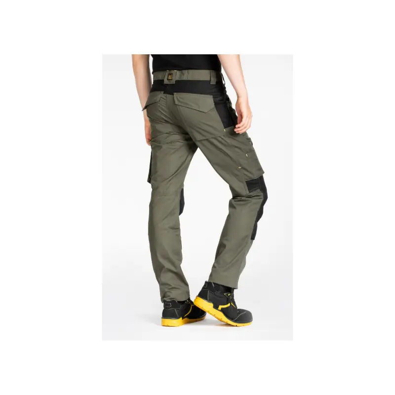The standardised khaki multi-pocket work trousers for men from RICA LEWIS will suit both DIY enthusiasts and professionals. Indeed, the latter can use it as these trousers comply with the European standard CE EN:13402-3:2017.The presence of stretch inserts on the sides of the reinforced knees and also on the back fork will allow you to move freely and comfortably in this robust piece. Additionally, a special fabric has been used on these trousers to allow the wearer to breathe, but above all, to stay cool and dry. The fit of your future trousers will be ensured by its integrated anti-slip double elastic waistband. Moreover, you can store various items such as a phone or tools in the numerous pockets (with gussets or closed side pockets) that this garment has. Finally, to prevent potential tears, RICA LEWIS has sewn with triple needles to guarantee optimal strength of the safety seams.