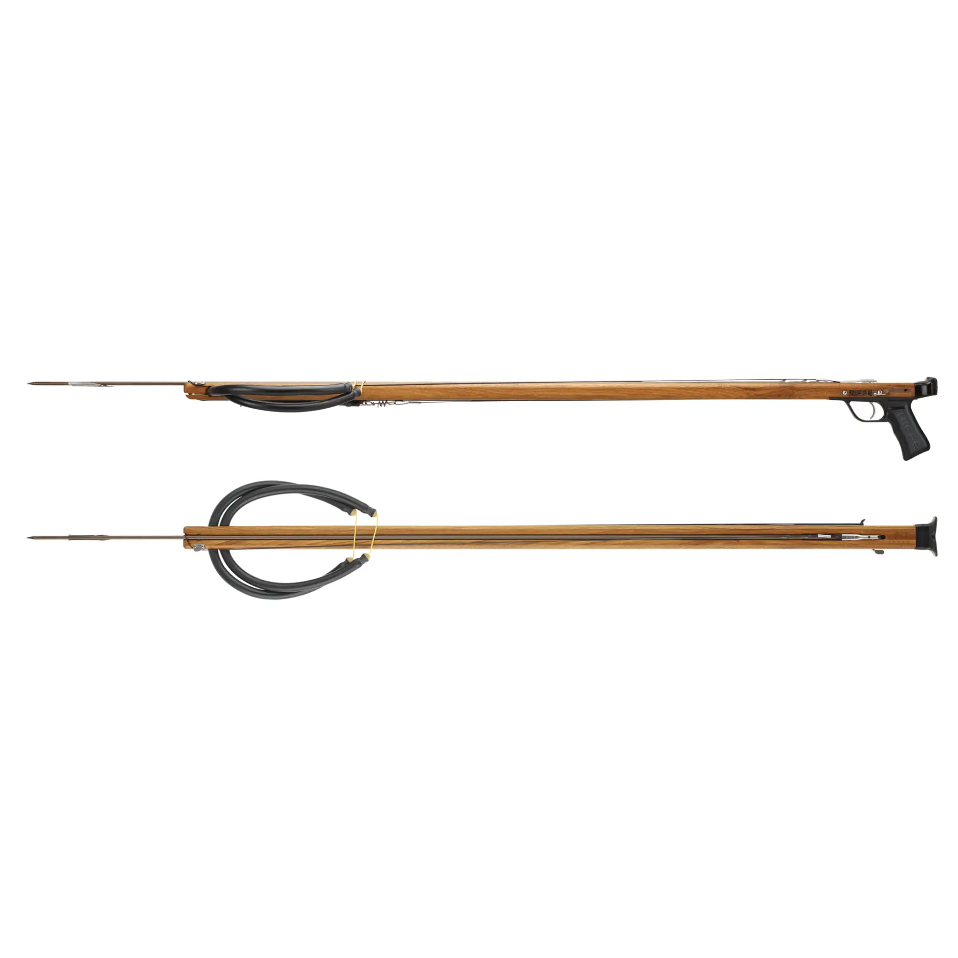 The Riffe Euro Series Teak Wood Speargun is meticulously crafted for divers and spearfishers of all levels, offering a harmonious blend of traditional craftsmanship and modern design. Its low-profile, three-vertical-laminate teak stock ensures buoyancy and durability, while the rectangular barrel with radius corners provides maximum beam strength. The bolted front muzzle enhances structural integrity, and the integrated stainless steel threaded reel inserts allow for seamless reel mounting.