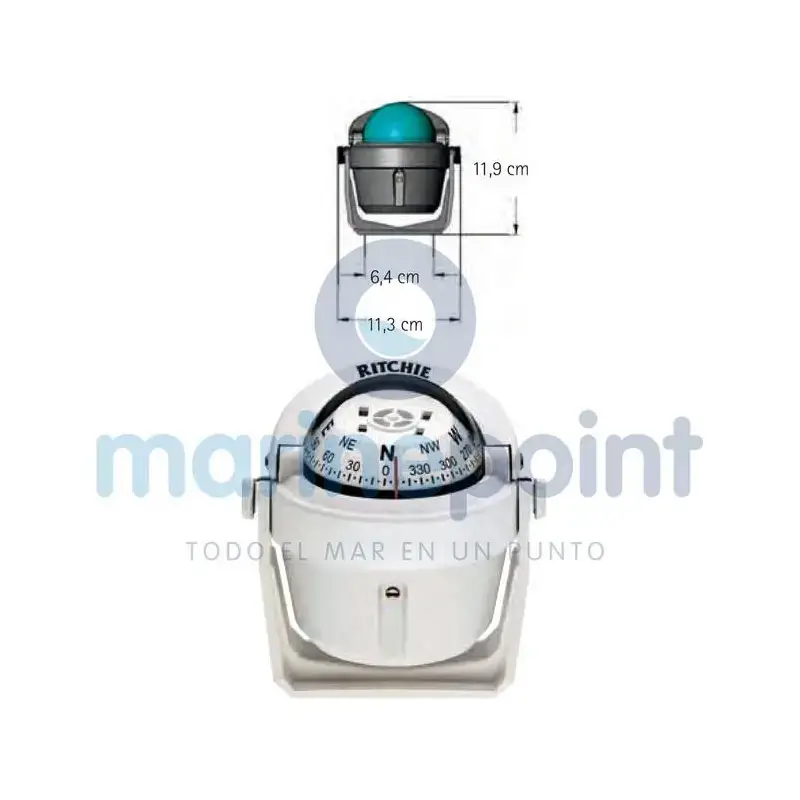 Direct reading compass. Rose with an apparent diameter of 70 mm Movement on a sapphire and steel pivot.Interior lighting at 12V. Built-in compensators.Ritchie NavigationØ: 70 mm 2 3/4 ''