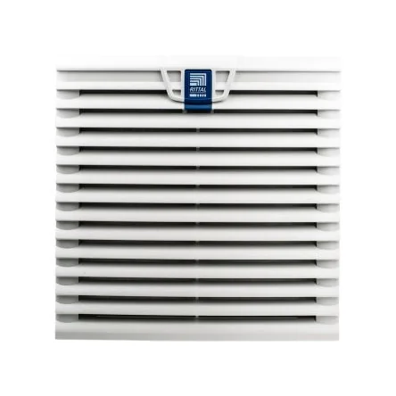Rittal Filter FanThe Rittal TopTherm series filter fan is easy to assemble, highly efficient, and a versatile unit that provides airflow of 205m³/h and supply voltage of 115VAC. It does not require any tools during assembly, exchange or maintenance. The fan module and power connection are simple to position to suit the needs of the application. A latch on the grille allows fast filter replacement and the electrical connections are managed with spring clamp terminals. TopTherm units feature efficient technology that enables greater pressure stability and more airflow. It has a face height of 255mm, width of 255mm and the installation depth of 107mm.Features and BenefitsFlexible assembly options Minimum installation depth Even air distribution Noise level 56dBCertificationsIP54 rated ANSI/ESD S20.20:2014 BS EN 61340-5-1:2007