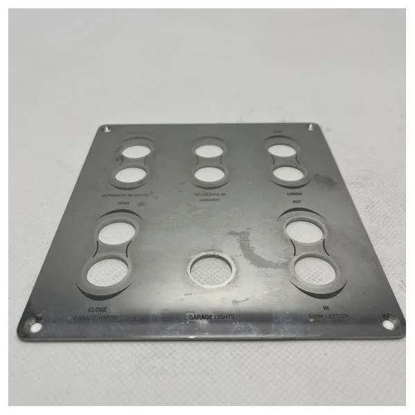 The Riva garage and aft systems control panel in silver - 370436 is a must-have for any boat or yacht owner. This innovative control panel offers convenience and efficiency in managing the garage and stern systems of your vessel. With this panel, you can effortlessly operate doors, hatches, and winches, allowing you to spend more time enjoying the water. The silver finish gives a luxurious appearance and perfectly complements any modern boat style. Thanks to the user-friendly interface, it is easy to switch between different systems and check the status of each system. The panel is also equipped with built-in safety features, so you can sail with peace of mind. The Riva garage and aft systems control panel in silver - 370436 is compatible with various brands and models of boats and yachts. With this panel, you can get the best out of your vessel and fully enjoy every voyage. Order now and upgrade your boat with this handy and stylish addition!