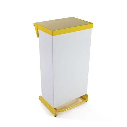 Robert Scott 65lt Fire Retardant Fully Enclosed Pedal Bin 65L White, Yellow Pedal Steel Waste Bin - 104218