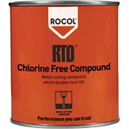 The Rocol RTD Chlorine-Free Compound is a soft paste for use in reaming, tapping and drilling and other metal cutting operations. RTD Chlorine Free Compound is suitable for all metals including hardened steels, nimonics and titanium alloys. Available in 450g pack size.Extends tool life Improves surface finish Increases removal rates Reduces production costs