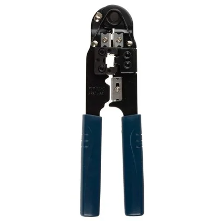 Professional hand crimp tool for RJ45 connectors with built-in cutter and stripper.