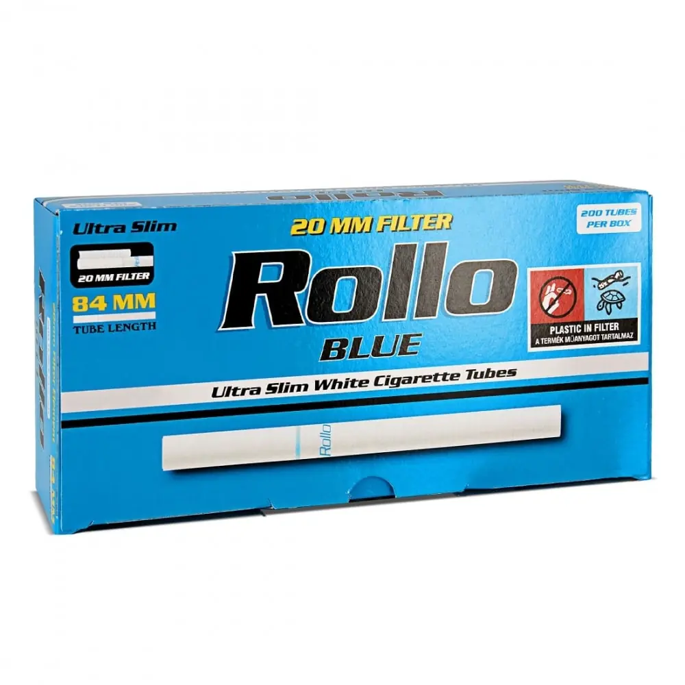- 1 box of 200 ultra slim 84mm rollo blue tubes