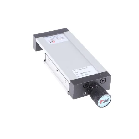 Positioning Carriage. Aluminium guide rail extrusion and carriage High guidance accuracy Vernier fine adjustment knob Positioning accuracy with threaded spindle ±0.1mm Self-locking threaded spindle All sizes can be easily combined together and/or with the next smaller or larger positioning carriage with the aid of optional accessories