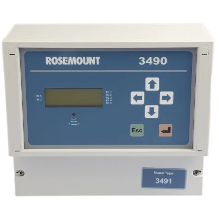 Rosemount Level ControllerThe Rosemount 3490 series level controller is a single input and panel mount device. This control unit provides comprehensive control functionality for any compatible transmitter ranging between 4mA and 20 mA. It has a back-lit display that gives a clear visual indication of the measured value and status of all inputs and outputs. It requires 115/230VAC power supply. This controller has easy to understand menus and a programming wizard function make programming easy while password protection protects from accidental or unauthorised changes.Features and BenefitsStandard control unit accepts input from one transmitter Compatible with HART 5, 6 and 7 Transmitters Five voltage-free SPDT relays for alarm and control duties Supports two voltage-free contact closure inputs Bright local display of measured value and input/output status Pre-programmed tank shapes, flow algorithms and control routines simplify configuration. 20-point strapping table facility is provided for non-standard applications Real-time clock for energy-saving routines, pump efficiency calculations and date/time stamping of data logging Panel mount enclosure with 2-part cage clamp terminal blocks at the rearCertificationsIP65 rated EN61010-1 ATEX intrinsically safe approvals