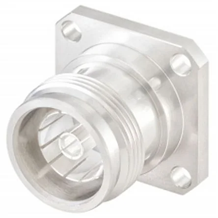 Rosenberger 4.3-10 RF Coaxial Panel Mount Jack Connectors. 4.3- 10 RF coaxial panel mount jack connectors with a compact, lightweight design and interface according to IEC 61169-54. The footprint of these 4.3- 10 connectors is 40% smaller than 7-16 connectors making them ideal for use in applications where space is limited. These 4.3-10 jack connectors have a high electrical performance and a low PIM (Passive Intermodulation) independent of torque. The electrical and mechanical planes of these RF coaxial jacks have been separated resulting in a low coupling torque for easy connection. The body of these coaxial jack connectors has a white bronze plating that provides protection against oxidization.. These 4.3-10 panel mount jack connectors have a 25.4mm square flange with four mounting holes and sealing gasket. The coaxial jack connectors can mate with all three types of coaxial cable plug connectors enabling design flexibility. Features and Benefits. Interface according to IEC 61169-54 Low PIM and high electrical performance Compact and lightweight design Small foot print Low coupling torque Easy installation Outstanding insertion/return loss. White bronze plated body for protection against oxidization. Product Application Information. 4.3-10 RF coaxial cable connectors are designed to meet the increasing performance needs of mobile communications applications. Their compact design means that they are able to support the ongoing space reduction requirements of infrastructure equipment