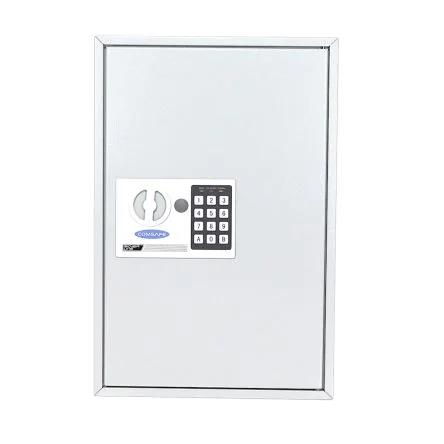 Securely store up to 64 keys with the Rottner Comsafe Key Cabinet, featuring an electronic lock and wall-mounted design.