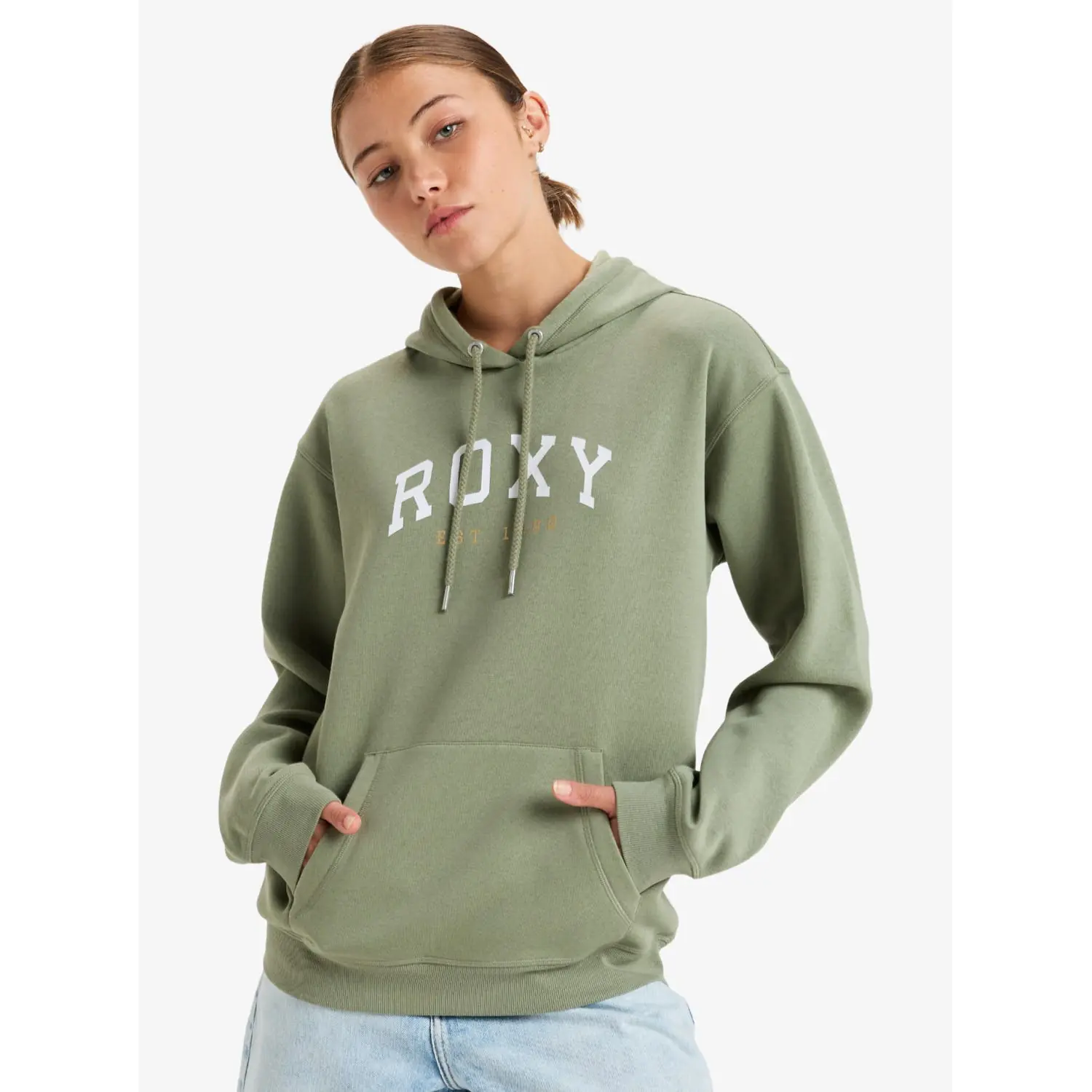The Surf Stoked - Pullover Hoodie for Women by Roxy is a cozy and stylish addition to your casual wardrobe. Crafted from a comfortable cotton-polyester blend brushed fleece fabric, this hoodie offers warmth and comfort for cooler days.
