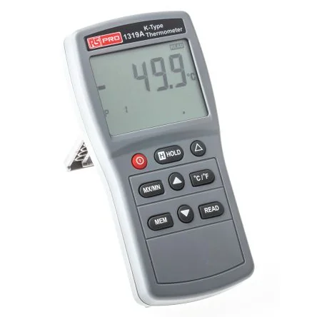 RS PRO 1319A Wired Digital Thermometer, K Probe, 1 Input(s), +1300 °C, +1999°F Max, 0.3 % ± 1 °C, 0.3 % ± 2 °F Accuracy - 1232215