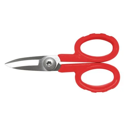 RS PRO Electricians Scissors. Our RS PRO-heavy-duty, chrome steel electricians scissors with a notch are ideal for electricians out in the field whilst working. These scissors have been specifically designed to cut Kevlar and other tough aramid fibres that are practically impossible to cut with conventional scissors and shears. These purpose-designed scissors incorporate a serrated cutting edge. The blades are also thick to resist bending, preventing the aramid fibres from getting between the blades. Features ; Benefits. Constructed from chrome steel with the serrated blades being hardened to allow them to trim Kevlar strength members The pivots allowing it to be adjustable - dependable on application Bevelled and precision ground for long-lasting sharpness and cutting performance The handles have been ergonomically designed to promote ease of use and comfort when being handled - this design also contributed to the balance, control and reduction of strain and fatigue The scissors have been vacuum treated to HRC 60-62 (only on the scissor blades) 5.5 in overall length Heavy-duty electricians The majority colour of these electrician's scissors is red Micro-serration cutting length 42 mm (1-5/8") and thickness of blade 3.2mm. RS PRO. RS PRO is our own brand range and brings you a wide range of high-quality, great value products offering you more choice. Trusted by engineers all over the world, every part of every RS PRO product has been rigorously tested against demanding industry standards; they ‘re only given the RS PRO seal of approval if we ‘re confident of their exceptional quality, which means you can be confident too.
