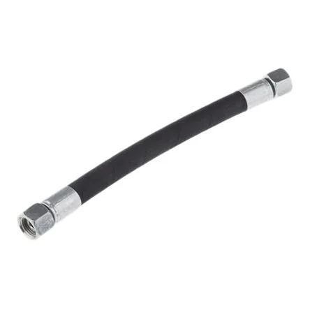 Flexible hose assemblies are capable of transmitting fluids at high pressures. Careful attention should be given to application, material ; technical specifications. These assemblies are not suitable for use with our range of high pressure hydraulic cylinders and pumps which have working pressures to 700 bar. They are outside the terms of our BS 5750 Part 2 stockist of assessed capability level B registration. Pin prick cover for air or gas applications above 17 bar (250 psi). RS PRO Straight Hydraulic Hose Assemblies. Get connected with RS PRO straight hydraulic hose assemblies. Our assemblies consist of synthetic rubber outer covering and high tensile steel wire reinforcing. The hose is flexible, crimped with a female-to-female end fitting ready to connect to other hydraulic components. During application, the hose transmits hydraulic fluid from one location to another in a hydraulic system. Features and Benefits. ;ul> ;li>Flexible hydraulic hose assemblies ;/li> ;li>Crimped end fittings ;/li> ;li>Synthetic rubber outer covering ;/li> ;li>High tensile steel wire reinforcing ;/li> ;li>Suitable for mineral oils, lubricating oils, water glycol, water oil emulsion, and hydraulic fluids ;/li> ;/ul>. Specifications. ;ul> ;li>Connector: Female to Female ;/li> ;li>Thread size: 1/ 4 in, 3/8in, 1/ 2 in or 3 /4in ;/li> ;li>Operating Temperature: -40 °C to +100°C ;/li> ;/ul>. Applications. Applications include, medium-pressure service with petroleum base hydraulic fluids, mineral oils, lubricating oils, water glycol, water-oil emulsion hydraulic fluids, hot oil, grease, crude and fuel oils, air and water.