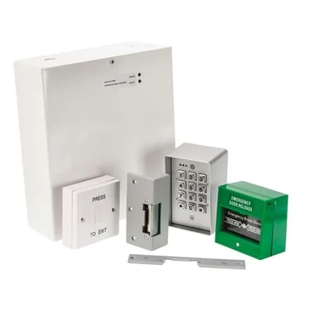 RS PRO Access Control System, 12 V DC, 2 AFor an all-in-one security solution for your building, look no further than this access control system. It includes a digital keypad that ensures only those who know the code have access to the property. The four-digit or five-digit code is easy to set and gives you an extra layer of security. There are thousands of possible combinations of codes. Also, this system comes with a fail-secure electric-door release that will remain locked even during a power cut. Push-to-exit buttons make doors simple to unlock from the inside and – for emergencies – break-glass units are included to override the system. As its part of our RS PRO range, everything in this kit has been rigorously tested. This access control system can be used in most residential and commercial accessways, whether theyre to a block of flats or an office building.Features and Benefits• DG-15 digital keypad, supporting 21 users • M1-LOCK electric door release • DRB001N press-to-exit button • CP-15 break glass unit • Supply voltage of 12 V DC • Consumes a 2 A current • RoHS (Restriction of Hazardous Substances) compliant • Conforms to the ANSI/ESD S20.20:2014 and BS EN 61340-5-1:2007 Electrostatic Control StandardsRS PRORS PRO is our own brand range and brings you a wide range of high-quality, great value products offering you more choice. Trusted by engineers all over the world, every part of every RS PRO product has been rigorously tested against demanding industry standards they’re only given the RS PRO Seal of Approval if we’re confident of their exceptional quality, which means you can be confident too.