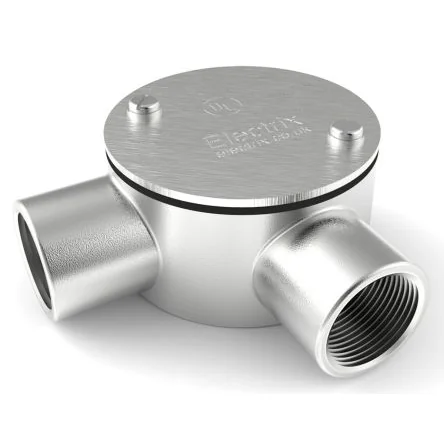 Durable 20mm angle box conduit fitting made from 316 stainless steel with IP67 rating.