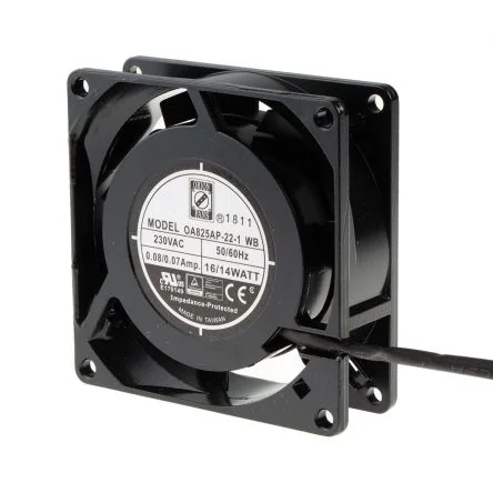 RS PRO Axial Fan, 230 V ac, AC Operation, 25cfm, 9W, 70mA Max, 80 x 80 x 26mm - 7897873
