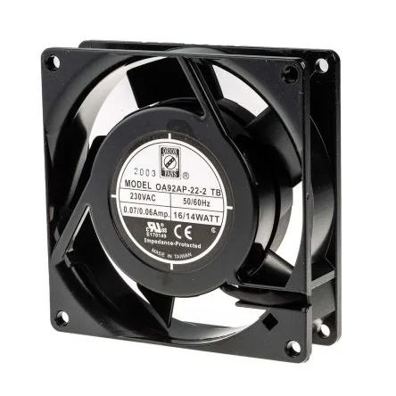 Efficient 230V AC axial fan with dual ball bearings for reliable cooling in industrial applications.