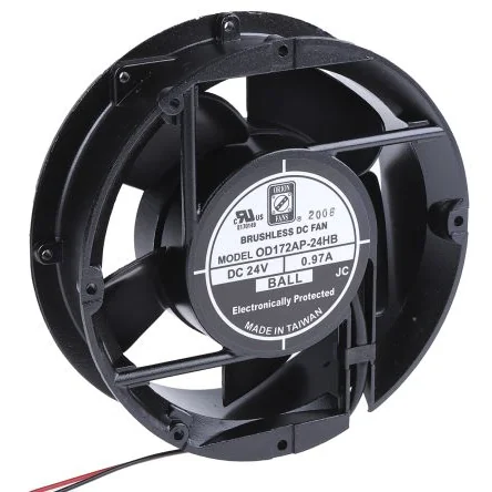 RS PRO, 24 V DC, Axial Fan, 172 mm x 51 mm, 399.3 m³/h, 23 WTo keep your equipment cool, look to this RS PRO axial fan. It has a compact build and a brushless DC motor making it durable, reliable and energy-efficient. The motor also offers the advantage of high power-to-weight ratio and excellent performance at top speeds. This axial fan uses hard-wearing ball bearings so it can be mounted and therefore draw in or push air out from any direction. Thanks to polarity protection that ensures smooth and consistent operation, the likelihood of overheating is reduced. The frame is manufactured from corrosion-resistant, die-cast black aluminium. Commonly found in industrial and commercial environments, such as IT operations, building sites and factories, this fan cools server racks, air-conditioning units and electrical cabinets. It operates between -10°C and +70°C. As part of the RS PRO range, it has been stringently tested for durability, reliability and safety.Features and Benefits• Dimensions of 172 mm x 51 mm • Supply voltage of 24 V DC • Power consumption of 23 W • Maximum current of 970 mA • Airflow of 399.3 m³/h • Noise level of 52 dB • Fan speed of 3300 rpm • Ball-bearing • Forward curve • Wire terminations • Round fan housing • Auto-restart, brushless motor • Impedance and polarity protected • Operating temperature range of -10°C to +70°CRS PRORS PRO is our own brand range and brings you a wide range of high-quality, great value products offering you more choice. Trusted by engineers all over the world, every part of every RS PRO product has been rigorously tested against demanding industry standards they’re only given the RS PRO Seal of Approval if we’re confident of their exceptional quality, which means you can be confident too.