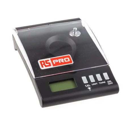 Requires 4 x AA batteries. RS PRO Jewellery Digital Scales. The pocket/jewellery digital scales from RS PRO provide weighing options in grams (g), carats (ct) and grains (gn). The scales are a handy, compact size making them easy to carry around for when you need them. RS PRO pocket scales are ideal for weighing small objects like jewellery. These scales feature 4 buttons and a screen display. The keys enable you to switch between units of measure at any point. A clear plastic cover protects the scales from potential knocks and dust. Options include: ; 111-3669 111-3669 - 30g weight capacity ; 111-3668 111-3668 - 20g weight capacity ; 111-3667 111-3667 - 10g weight capacity. Features and Benefits:. Small compact digital scales - ideal for weighing small amounts Power - requires 4 x AA batteries Platform size is 18 mm diameter Built-in digital LCD screen - clearly and quickly displays the weight of the item being weighed and is easy-to-read Tare function - the scale automatically subtracts the weight of the container so that it is zero Calibration options are available. Typical Applications:. Weighing scales or scales are devices that can measure the weight of an item placed on it. They are precise measurement instruments that can be used to measure a range of items within different applications and environments, as long as it ‘s within the weighing capacity. Weighing scales can range in design from being ultra-compact and portable, easy to transport and store away, especially for weighing smaller items on the go, or can be larger and a more permanent fixture within the area it is being used it, generally for weighing larger, heavier items. Weighing scales are incredibly versatile and easy to use, which is why they can be most commonly found in: Schools or universities Laboratories or research facilities Shops At home Manufacturing and industrial environments like factories, warehouses and more These portable pocket digital scales are ideal for weighing small items such as jewellery. Why RS PRO? RS PRO is our own brand range and brings you a wide range of high-quality, great value products offering you more choice. Trusted by engineers all over the world, every part of every RS PRO product has been rigorously tested against demanding industry standards; they ‘re only given the RS PRO seal of approval if we ‘re confident of their exceptional quality, which means you can be confident too.