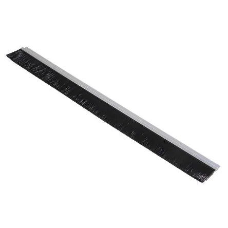 RS PRO Aluminium Brush Strip. From RS Pro a high-quality brush strip or brush seal which is a type of draught excluder designed to seal the gap between the bottom of a door and the floor to prevent draughts and keep in heat. As well as draught proofing, this brush strip also helps prevent dust and debris like leaves and litter from entering the threshold of a building or factory from outside. The brush strip consists of an aluminium carrier with a 180° mounting angle containing a brush made up of a row of black nylon bristles. The strip can be cut to size to provide an accurate fit to any door. Key Features and Benefits. • Robust design with aluminium carrier • 180° mounting angle • Easy to assemble • The strip can be cut to size using hacksaw or bolt cutters • -50°C to +100°C temperature range • Resistant to most common solvents. Note: 'Length' in specifications refers to bristle length. Applications. This brush strip seal can be used to provide draught proofing on a wide range of door types in both domestic and industrial premises including hinged, folding and sliding doors. The design of brush strips with their flexible bristles also makes them ideal for use on uneven floors. ;I>Industrial applications for this brush strip include: ;/I> • Revolving doors • Roller shutters • Loading bay doors ;I>Domestic applications for this brush strip include: ;/I> • Household doors • Garage doors • Sheds • Kennel doors Frequently Asked Questions How Do I Fit a Brush Strip? These brush strips are easy to fit, simply measure the width of the closed door, then, with a hacksaw or cutters cut the aluminium brush strip to size. Position the strip up against the bottom of the door and screw into position. The brush bristles have to overhang the bottom of the door so they meet the floor surface and totally seal the gap