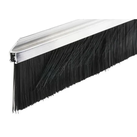 RS PRO Door Brush Strips. A range of RS PRO brush strips designed to seal the gap between the bottom of a door and the floor. Brush strips can be attached to the bottom of a door and act as a draught excluder to prevent draughts and keep in the heat. The brush also prevents dust and debris like leaves and litter from entering the threshold of a building or factory from outside. The strip can be cut to size to provide an accurate fit to any door. These brush strips consist of a straight length of extruded aluminium, known as a carrier or holder. The aluminium carrier houses a length of black nylon bristles in the form of a long brush. Brush strips are available in different lengths and with different door mounting angles 45°, 90° and 180°. The brushes have different bristle lengths and bristle diameters. Options available for RS PRO Aluminium Nylon Black Brush Strip: ; 326-9808 326-9808 - 90 degree 19 mm x 6.7 mm x 6.7 mm ; 326-9842 326-9842 - 90 degree 25 mm x 7.9 mm x 7.6 mm ; 326-9870 326-9870 - 90 degree 32 mm x 7.9 mm x 7.6 mm ; 326-9886 326-9886 - 45 degree 32 mm x 6.7 mm x 6.5 mm ; 326-9892 326-9892 - 90 degree 45 mm x 7.9 mm x 7.6 mm ; 326-9915 326-9915 - 90 degree 50 mm x 7.9 mm x 7.6 mm ; 326-9943 326-9943 - 90 degree 60 mm x 13 mm x 12 mm ; 326-9959 326-9959 - 45 degree 60 mm x 13.2 mm x 12 mm ; 326-9971 326-9971 - 90 degree 75 mm x 13 mm x 12 mm ; 326-9993 326-9993 - 90 degree 115 mm x 13 mm x 12 mm RS PRO have a great range of sealing solutions such as strip bushes, edge protectors, edging strips and sealing strips to meet all your requirements. Features and Benefits:. Manufactured from black Nylon 6 filament Encased in an electrogalvanised mild steel channel and housed in an extruded mill finished aluminium alloy carrier Operating temperature range -50°C to +100°C and resistant to most common solvents Available in most thicknesses with different filament lengths Easily cut using a hacksaw and bolt cutters (see stock no. ; 539-069 539-069 ) Instructions supplied with the product Supplied in 1 metre lengths Length in specifications refers to Bristle Length. Typical Applications. This brush strip seal can be used to provide draught proofing on a wide range of door types in both domestic and industrial premises including hinged, folding and sliding doors. The design of brush strips with their flexible bristles also makes them ideal for use on uneven floors. Brush strips can be used in a wide variety of industrial and domestic applications; • Bottom of revolving doors • Roller shutters • Loading bay doors • Gates and fences • Household doors • Garage doors • Sheds • Kennel doors. FAQs. How Do I Fit a Brush Strip? Brush strips are easy to fit, simply measure the width of the closed door, then, with a hacksaw or cutters cut the aluminium brush strip to size. Position the strip up against the bottom of the door and screw into position. The brush bristles have to overhang the bottom of the door so they meet the floor surface and totally seal the gap. Why RS PRO? RS PRO is our own brand range and brings you a wide range of high-quality, great value products offering you more choice. Trusted by engineers all over the world, every part of every RS PRO product has been rigorously tested against demanding industry standards; they ‘re only given the RS PRO seal of approval if we ‘re confident of their exceptional quality, which means you can be confident too.