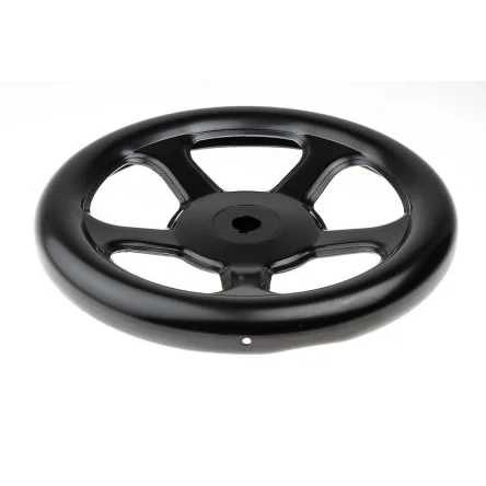 Durable 250mm black steel hand wheel designed for precision and reliability in various applications.