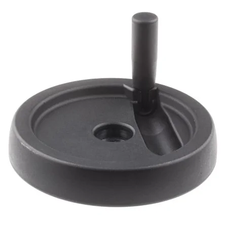 Durable 150mm black thermoplastic hand wheel with a fold-away design for enhanced safety.