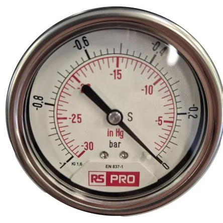 This RS PRO analogue pressure gauge features a 0bar measurement and a durable stainless steel case.